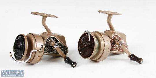 J W Young & Sons Redditch 'The Ambidex' No 2 casting reel fixed spool 1949-52, type 2, half bail arm, light use, runs well, in original leather zipped case. J W Young & Sons Redditch 'The Ambidex' casting reel, fixed spool 1953 type 2/3, half bail arm, light use, runs well, in original leather zipped case (2)