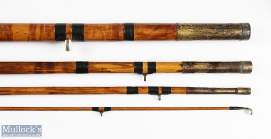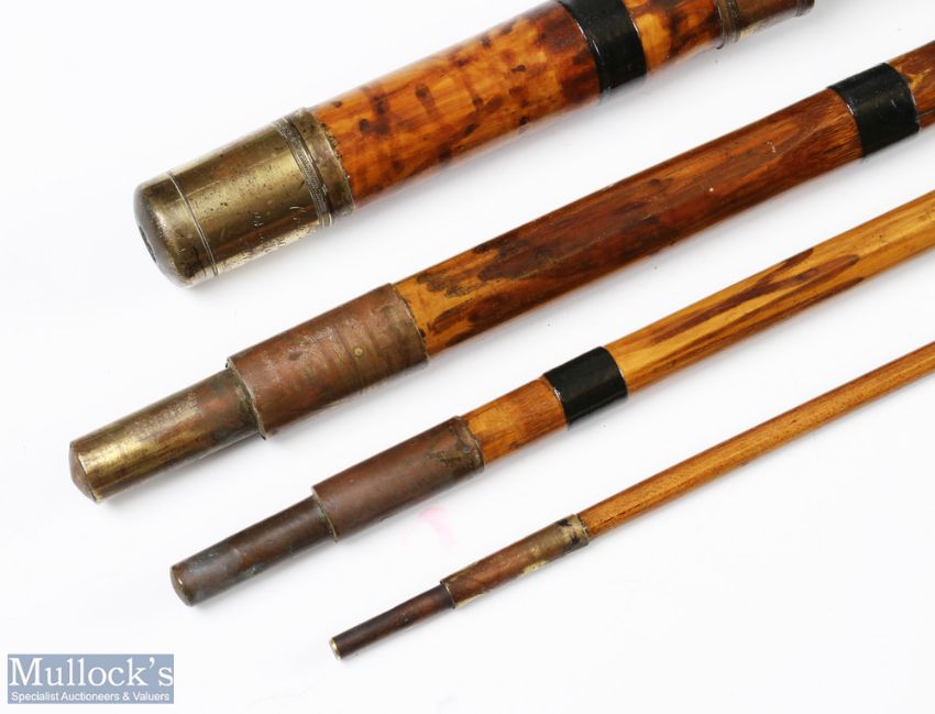 Chas Kewell London whole cane rod 10'6" 4pc tip section lacquered brass sliding reel fittings and butt lined butt and tip rings circa 1866-67 cloth bag tip