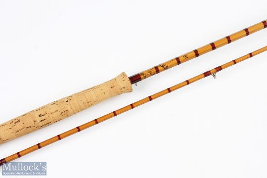 Hardy Alnwick the Halford knockabout Palakona split cane fly rod No 39894 (1961) 9'6" 2pc line 7 # alloy up locking reel seat with concealed spike in butt stud lock joint clear Agate butt/tip ring MCB very light use