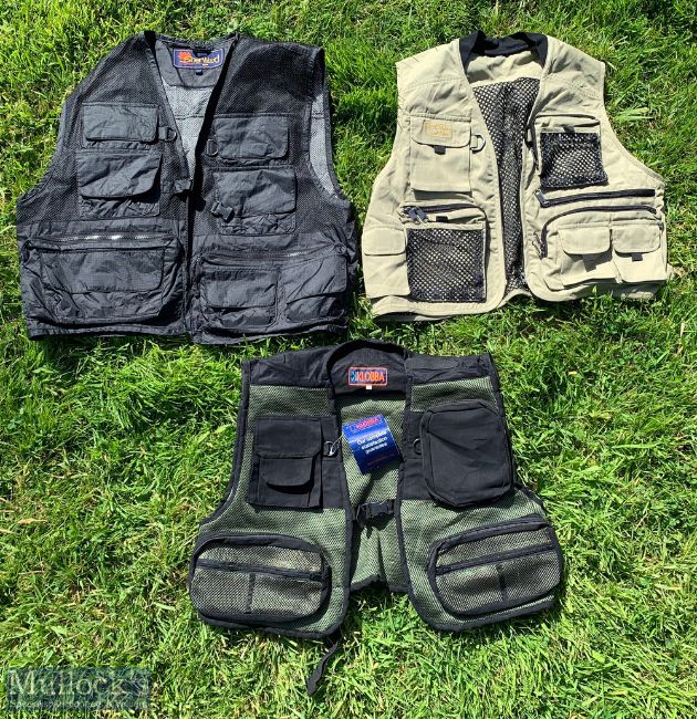 3x Fishing Waist Coats Vests Gilet, all size L - to include a Klobba - new with tags, Foster & Son, Sherwood Forest both in light worn condition