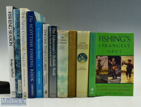 Fishing Book Collection to include the Scottish fishing book Sandy Forgan 2001 signed Copy, The Complete Specimen Hunter Tony Miles 1989, Fishing Forays 1992, The Complete Angler S Downes M Knowelden 1983, Fishing Season Roger McPhil 1990, Great Angling Stories Chambers 1988, The Fisherman's Companion K Mansfield 1968, A Fisherman's Log Major G L Ashley Dodd 1929, The One That Got Away Christopher Wormwell 1991, The Fisherman's Bedside Book D & G Pownall 1980, Fishing's Strangest Days PB, T Quinn 2002 (12)