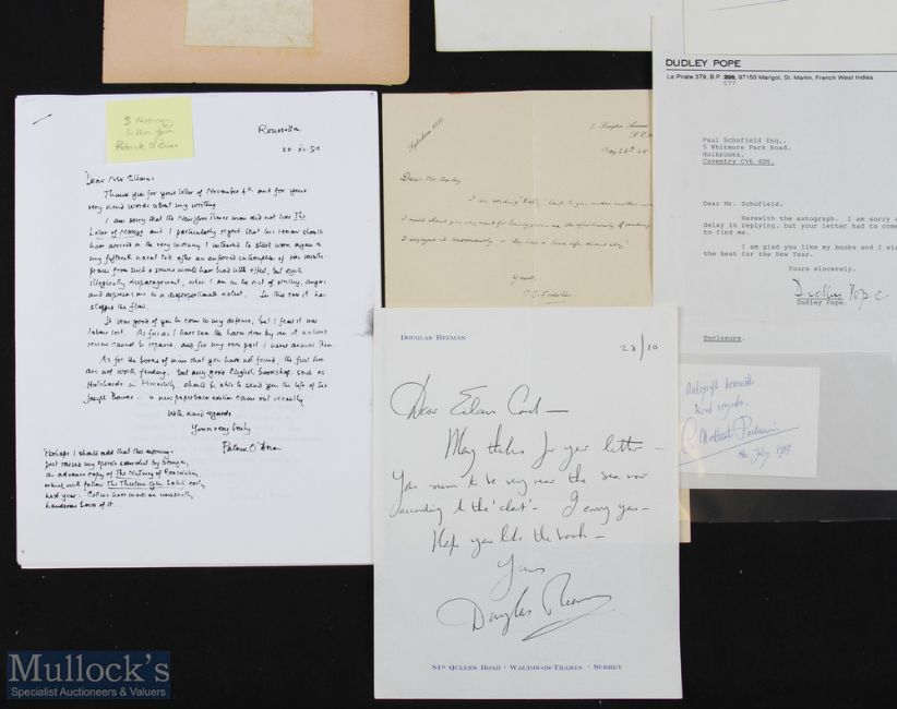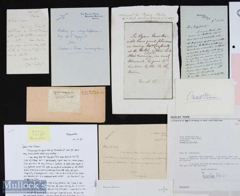 NAVAL - AND NAVAL RELATED group of autograph pieces including an autograph letter of Sir Charles Napier, Admiral, Andrew Cunningham, Admiral, The 4th Duke of Northumberland, Thomas Byam Martin, Admiral, Arthur Farquar, Admiral, a series of letters of the author Patrick O'Brien, an als of Douglas Reeman, a tls of Dudley Pope, signature of Northcote Parkinson, an als and original ms poem of C S Forrester, and a signature of Tim Severin