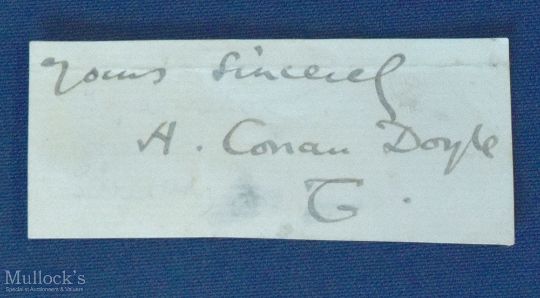 CONAN DOYLE (SIR ARTHUR) author of 'Sherlock Holmes' signature on a small slip of paper cut from a letter.