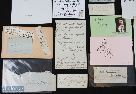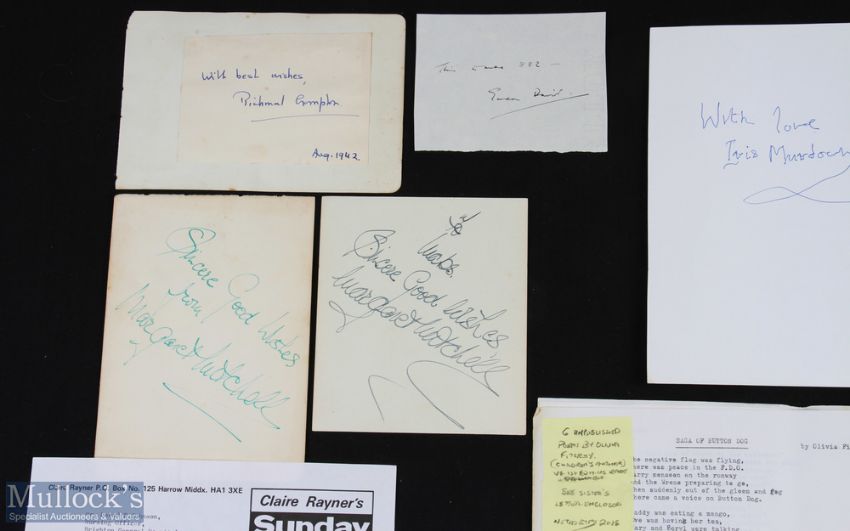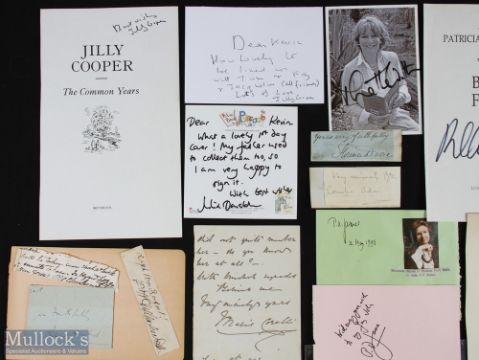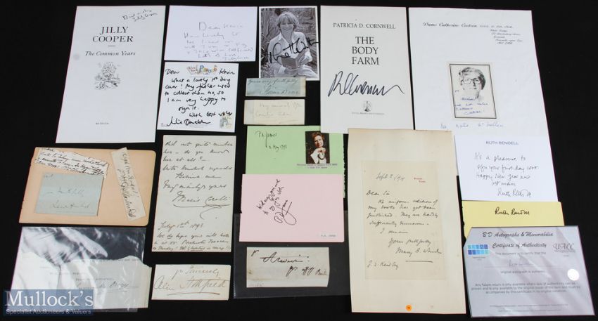 LITERATURE - WOMEN AUTHORS good collection of autographic pieces - mostly signatures on album pages etc including: Richmal Crompton, Josephine Tey, Eleanor Herbert, Olivia Fitzroy, Iris Murdoch, Claire Rayner, Jilly Cooper, Minette Walters, P D James, Ruth Rendell, Patricia Cornwell, Catherine Cookson, Julia Donaldson, Marie Corelli, Mary Augusta Ward, Florence Dixie, Ouida, Cornelia Adair, Baroness Orczy, Alice Meynell, Maria Charlesworth etc