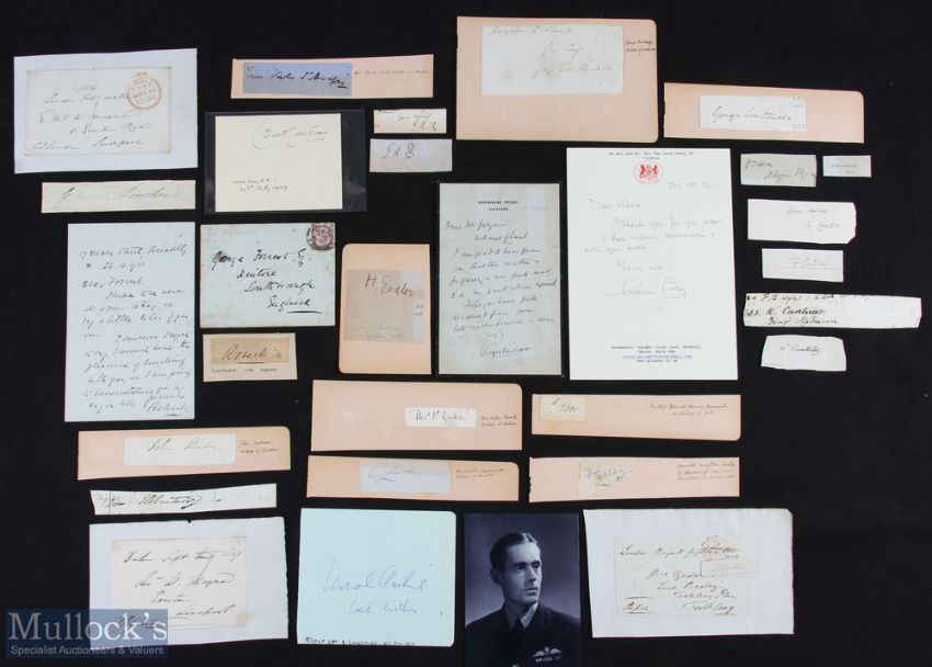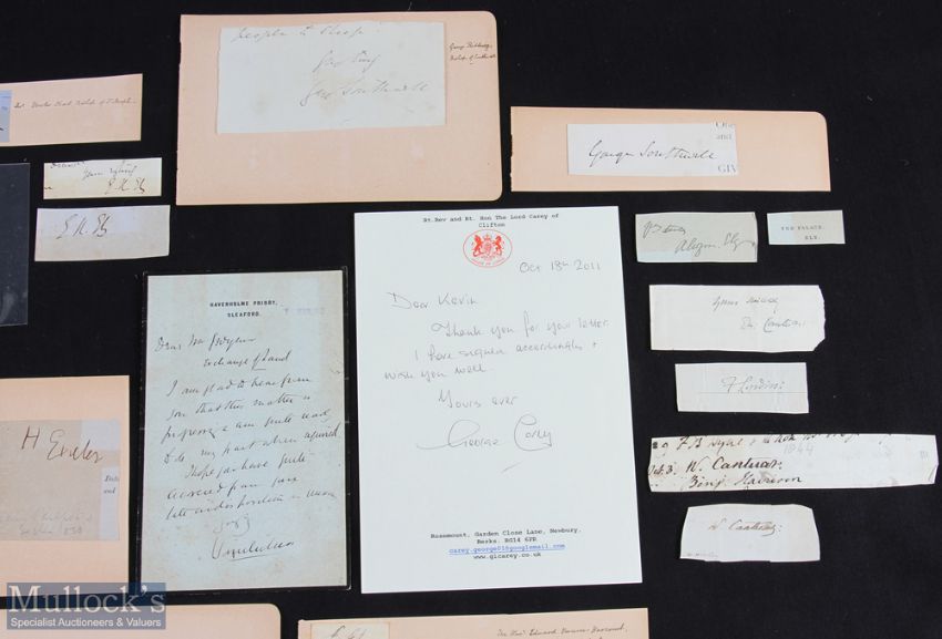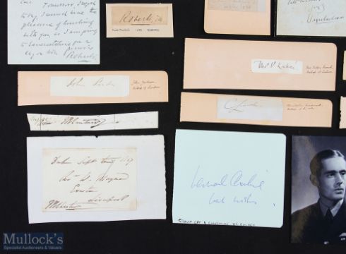 AUTOGRAPHS group of autographic pieces including: Field Marshall Roberts, Leonard Cheshire, and a group of signatures of approx. 18 various Archbishops of Canterbury and other men of God.