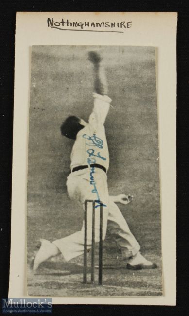 SPORT - CRICKET - HAROLD LARWOOD (BODYLINE SERIES) small bw photograph showing Larwood bowling signed in a lighter portion of the image