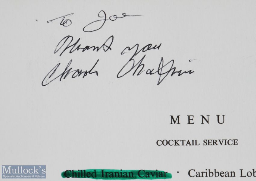 ENTERTAINMENT - HOLLYWOOD - CHARLIE CHAPLIN - a BOAC menu signed and inscribed by Chaplin to interior