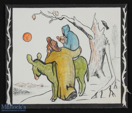 ENTERTAINMENT - HOLLYWOOD - STAR WARS - ALEC GUINESS delightful hand designed Christmas Card signed 'from Alec, Merula and Matthew Guiness' featuring a group of pets on the inside and a colour depiction of the flight into Egypt on the cover. Unusual.