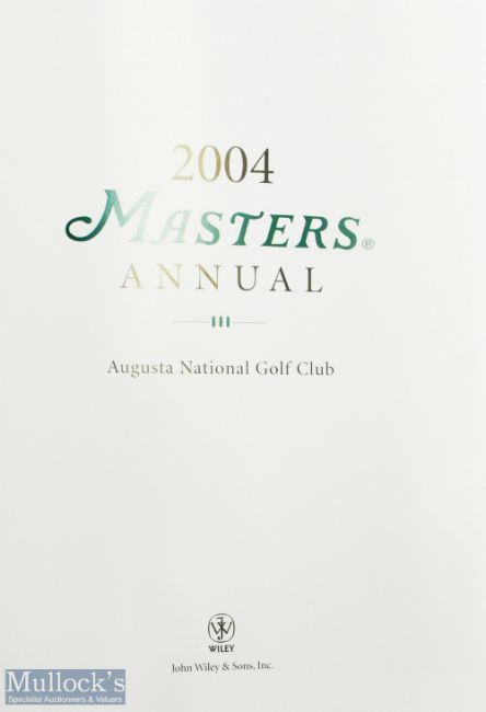2004 Masters Golf Annual - won Phil Mickleson - original green and leather gilt boards comprising full detailed report of the Masters held at Augusta National with colour photographs. Note These Annuals are printed annually starting in 1978 to commemorate the activities and achievements during the tournament