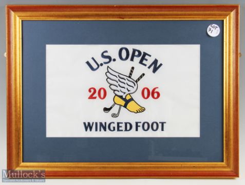 2006 US Golf Championship pin flag wingfoot, framed and mounted under glass - size # 67cm x 50cm
