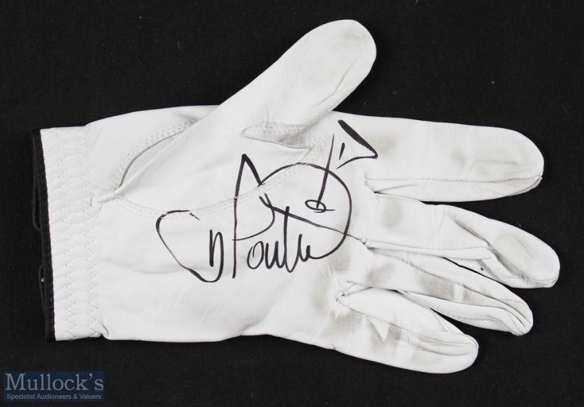 Ian Poulter signed tailor-made white leather worn golf glove - given to the consignor who caddied for Ian after The Par 3 Masters competition in 2019