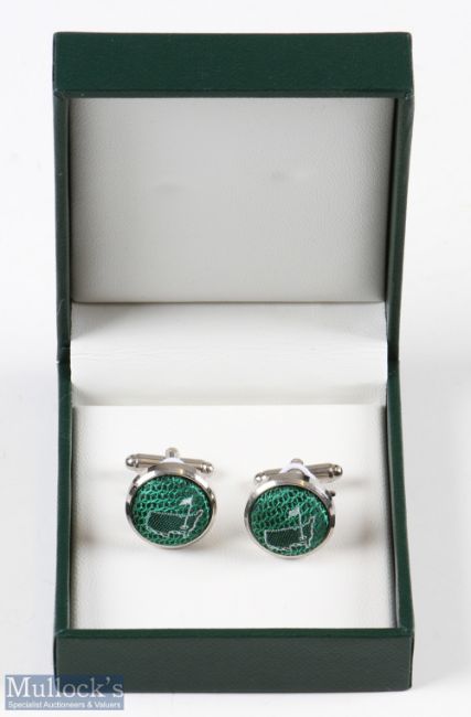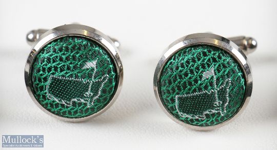 Pair Masters Golf Green Silk Cuff Links - in the official Masters green and gilt logo box and original sleeve with Masters label - only available at the Masters tournament
