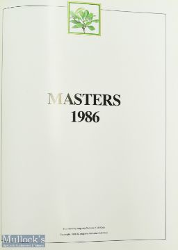 1986 Masters Golf Annual - won by Jack Nicklaus for record 6th time - original green and leather gilt boards comprising full detailed report of the Masters held at Augusta National with colour photographs. Note These Annuals are printed annually starting in 1978 to commemorate the activities and achievements during the tournament