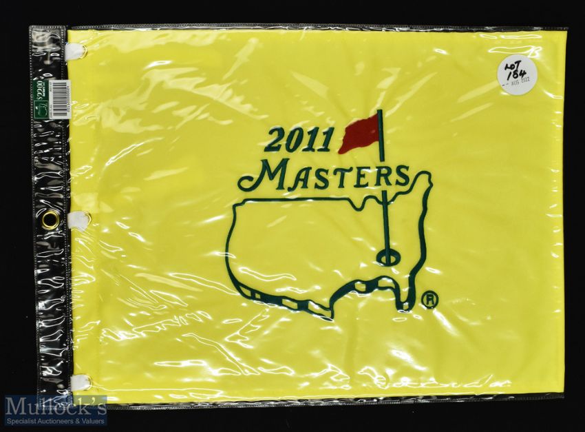 2011 Official Masters Golf Tournament replica embroidered pin flag - won by Charl Schwartzel complete with tabs and sleeve overall 13" x 17.5"