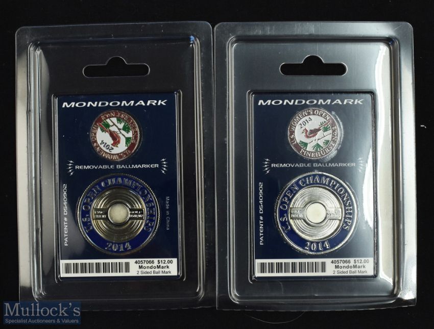 2014 US Open Golf Championship Pinehurst No.2 double sided enamel ball marker - made by Mondomark with removable magnetic ball marker-still in the original packaging; and Pinehurst Golf Resort Magnamark ball marker with removable ball marker centre - in its original packaging (2)