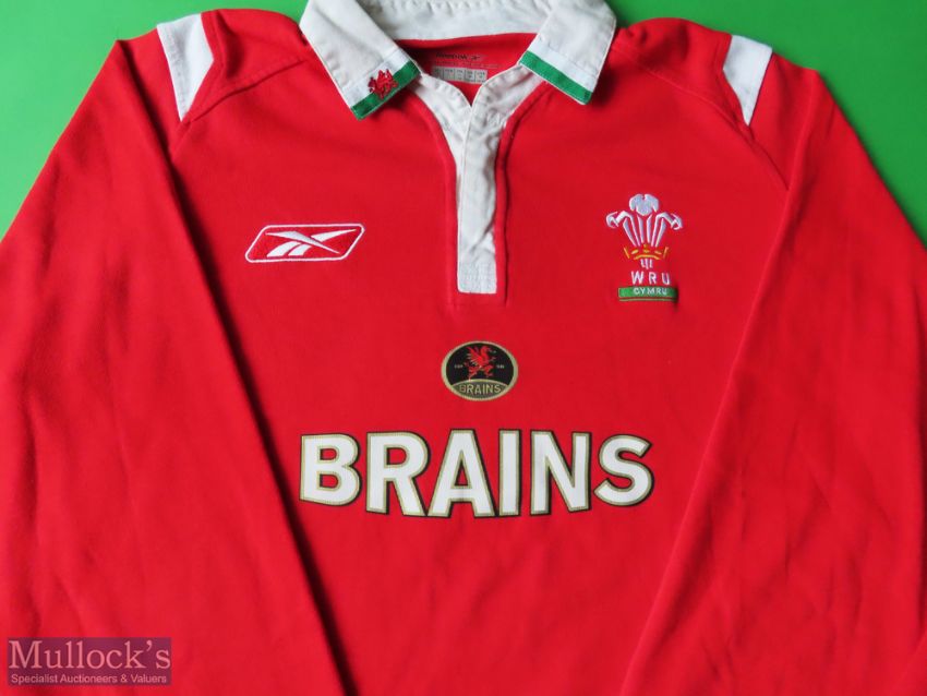 Wales Home Rugby Union Shirt made by Reebok, sponsored by Brains, Long Sleeve, Size M