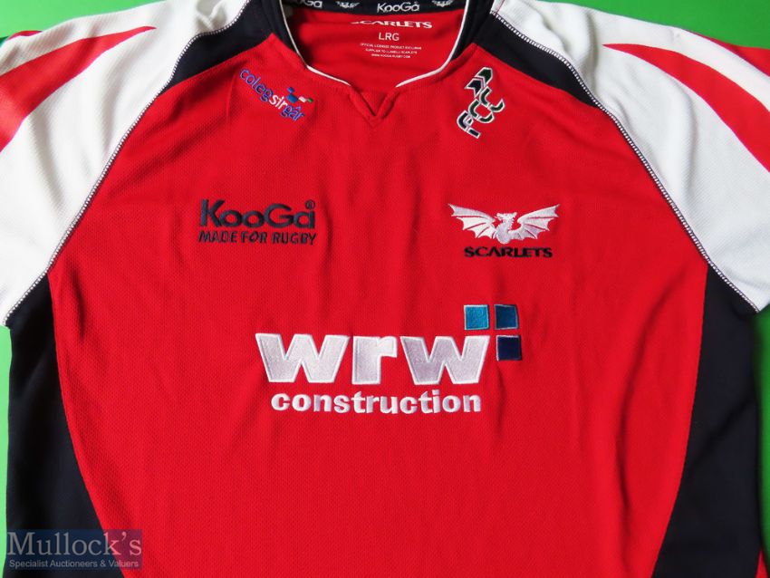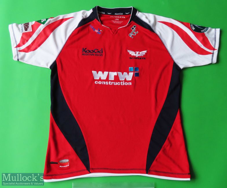 Scarlets Rugby Shirt made by Kooga, sponsored by WRW Construction, Short Sleeve, Size L