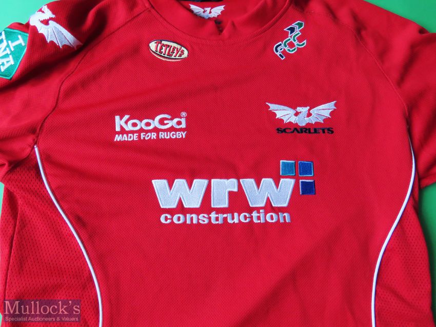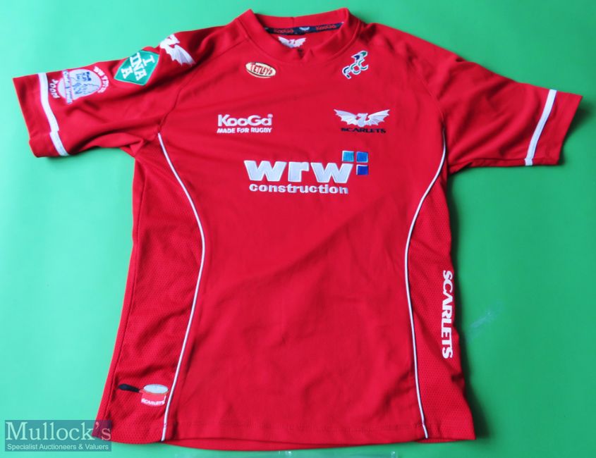 Scarlets Rugby Shirt made by Kooga, sponsored by WRW Construction, Short Sleeve, Size L