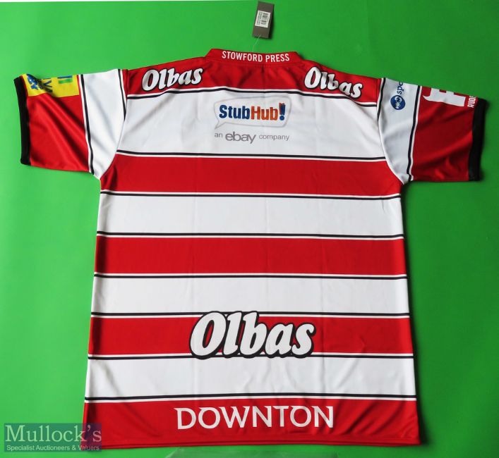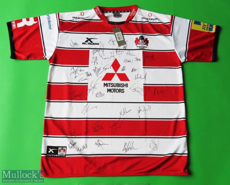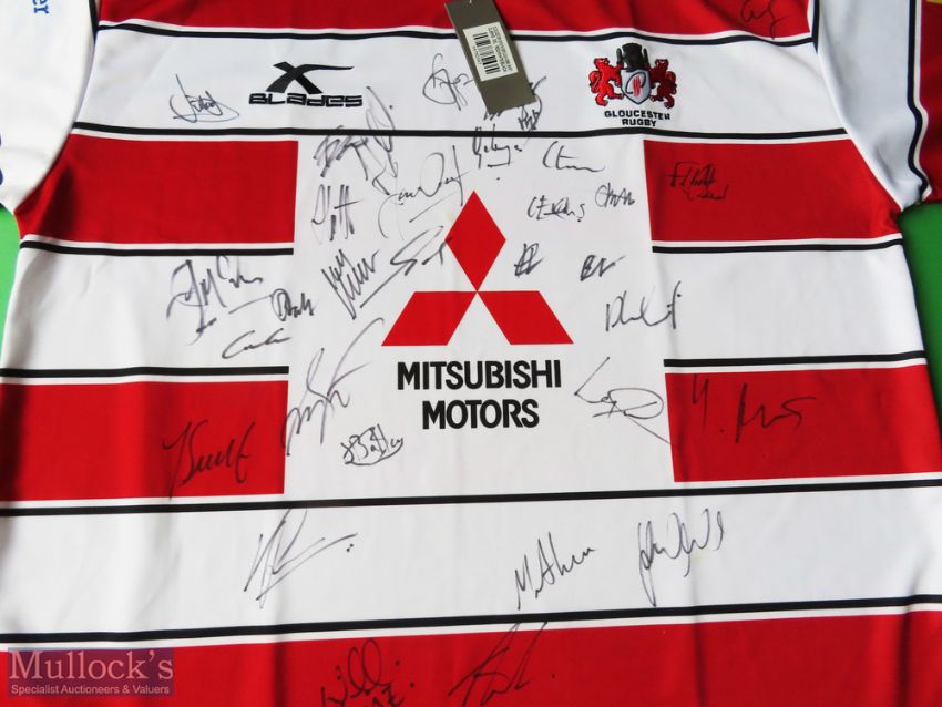 Gloucester Multi Signed Rugby Shirt with tag, made by Blades, sponsored by Mitsubishi Motors, Short Sleeve, Size 3XL, Small stain to shoulder and centre chest