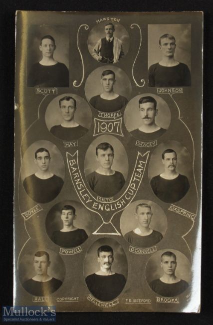 1907 Barnsley FC postcard showing the English Cup team of 1907, not postally used, unstamped; good. (1)