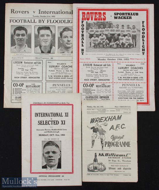 1954-55 Football programmes, to include Wrexham v Football League XI, 1952-53 Doncaster Rovers v International XI, 1953-54 Doncaster Rovers v Sportkub Wacer, 1955-56 Doncaster Rovers International select XI v select XI (4)