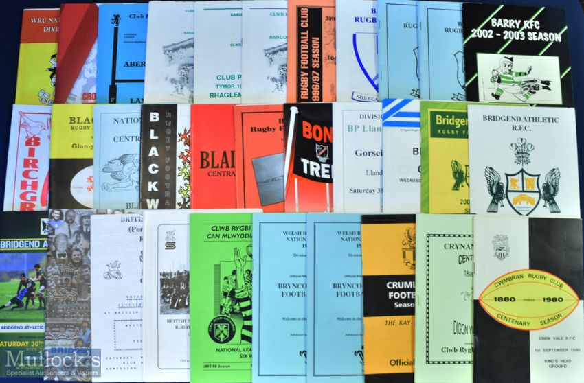 Welsh Club Rugby Programmes, A-C (c.100): Fine wide selection, 1960s to 2000s, first class and well below, to inc Bridgend v Cardiff 10/1978 and Cardiff v Quins 04/1968, v Bective Rangers 02/1979 & v Toulouse Heineken Cup, 10/2000). VG