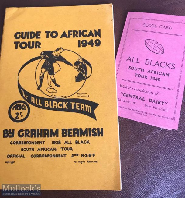 Scarce 1949 All Blacks Rugby Tour to SA (2): The Beamish guide to the tour & a neat pink itinerary card. VG