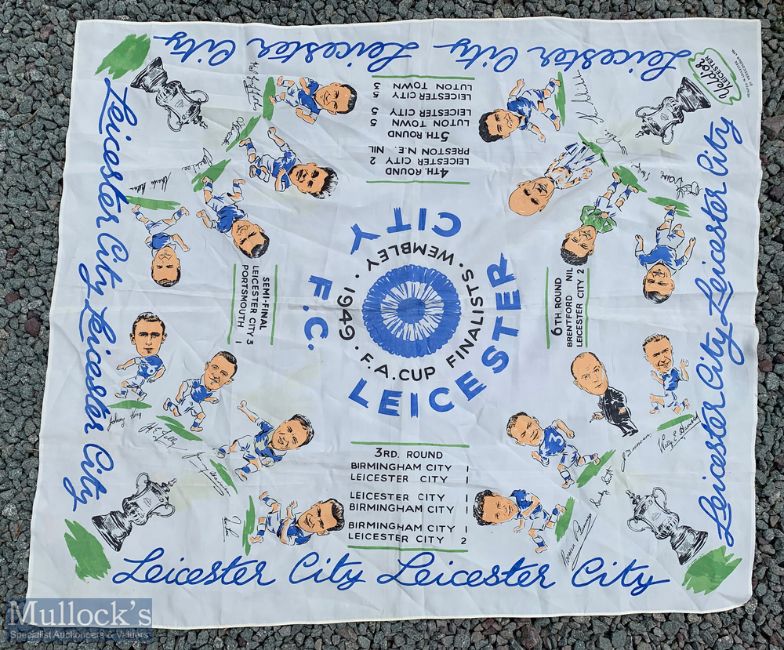 1949 FA Cup Leicester City Football Silk Scarf printed by versicolour in Leicester, size 32"x 37"