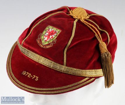 1972-73 Wales International Football cap, swapped by Martin Peters (1966 World Cup winner) for one of his England caps. Embroidered with gold thread. Comes with COA from the Old Boy's Network Corporate Golf Days signed by Martin Peters stating he swopped it for one of his caps - but it does not give who the original owner was