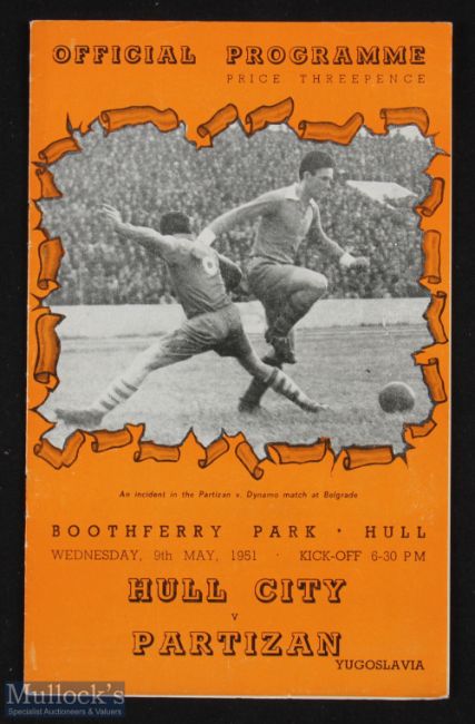 1951 Festival of Britain Football programme Hull City V Partizan, missing staples otherwise G