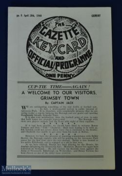 War time 1939/1940 Middlesbrough v Grimsby Town Football League War Cup 20 April 1940; good condition.