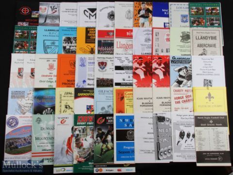 Welsh Club Rugby Programmes, D-N (85): Fine wide selection, 1960s to 2000s, first class and well below, to inc Llandovery Coll v Christ's College Brecon, 1986, Llanelli v Bath 11/1998 & Mon County v British Police 1992. G/VG