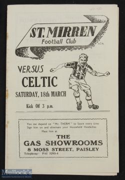 1949/50 St. Mirren v Celtic Division 'A' match programme 18 March 1950 at Love Street; fair/good condition. (1)