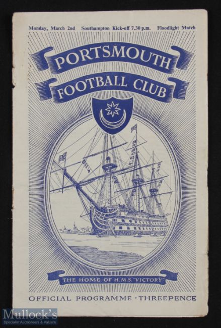1952-53 Portsmouth v Southampton Football Programme, opening of new floodlights missing staples otherwise good