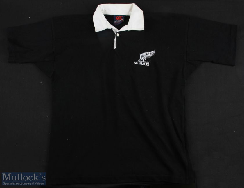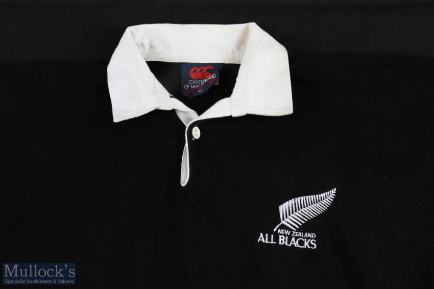 1988 Match-prepared Frano Botica NZ No.19 Rugby Jersey: Lovely crisp Canterbury-made 42” jersey with white 19 to rear and the stylised New Zealand All Blacks & silver fern to breast. Excellent