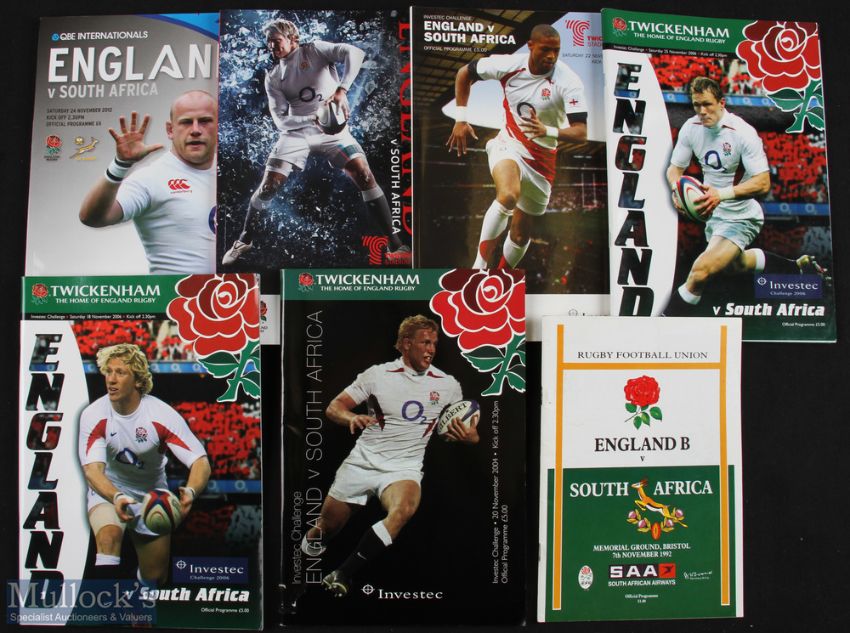 England v South Africa etc Rugby Programmes 1992-2012 (6): To inc England 'B' v SA (Bristol) 1992, and England v S Africa 2004, 2006 (1st & 2nd tests), 2008, 2010 & 2012. All excellent