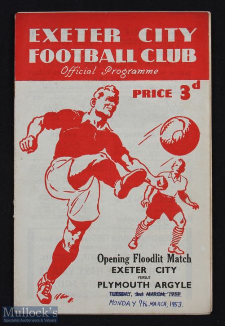 1952-53 Exeter City v Plymouth Argle opening of new flood lights football programme, missing staples otherwise good