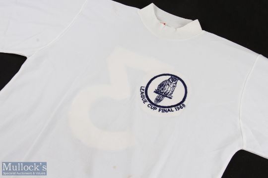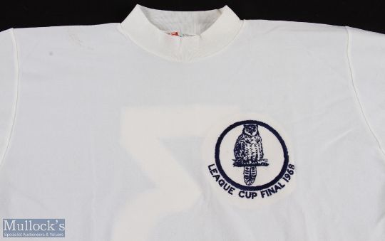 DESCRIPTION AMENDMENT - 1968 Football League Cup final Leeds United player issued, commemorative shirt Umbro, crew collar, blue lettering with badge, No. 3 to the reverse. (1) Issued to the players after the final. NB: Terry Cooper scored the only and winning goal for Leeds United v Arsenal at Wembley 2 March 1968 in the 1-0 victory.