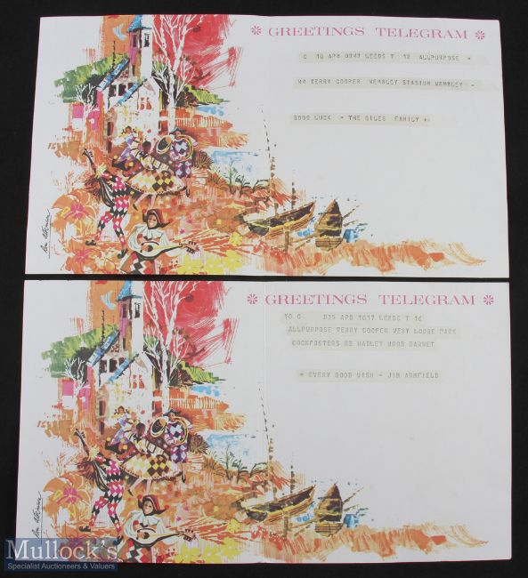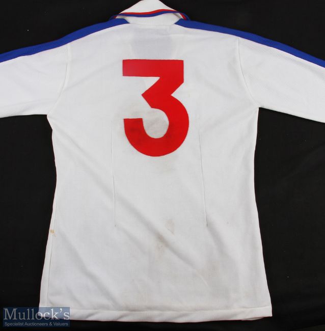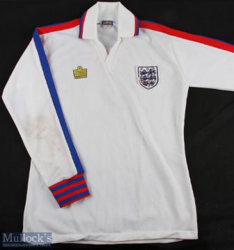 1974 England international match shirt v Portugal, 24 November 1974 Admiral, white, blue/red edgings, fold down collar 3 Lions badge (slight loose stitching to collar), No. 3 to the reverse. Also telegram (No.1) from Jimmy Armfield, telegram (No 2) from Johnny Giles & family both dated 20 November 1974 on match day. (3) NB: Terry Cooper last game for England. Note: From direct descendant of the family