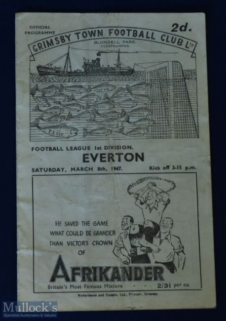 1946/47 Grimsby Town v Everton Div. 1 match programme 8 March 1947; fair condition.