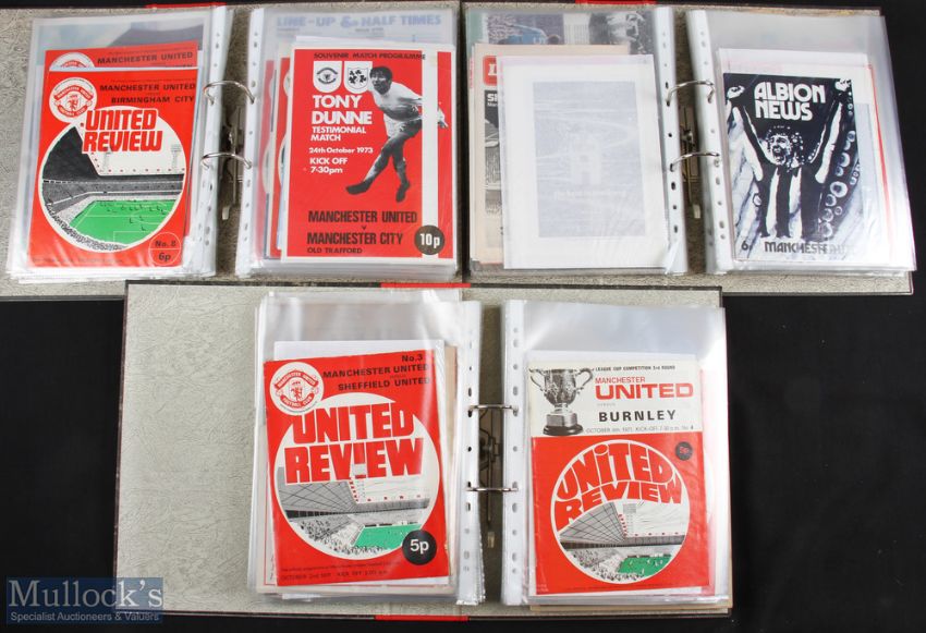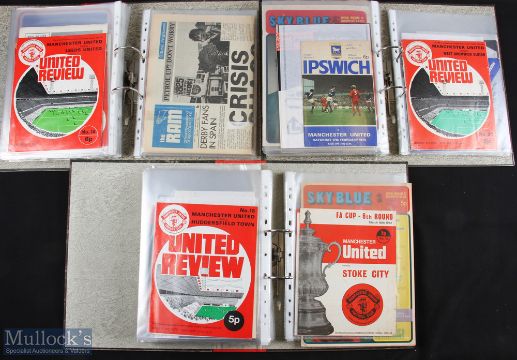 1971/72 Manchester United programme collection homes complete season (21) + FAC (3) + FLC (2) + friendly Coventry City also Stoke City v WHU (FLC s/f) - home games v Arsenal + WBA played on neutral grounds; aways complete season (21) plus FAC Southampton, Preston NE, Middlesbrough, friendlies at Luton Town, Fulham, Manchester City (testimonial) plus Chorley (Lancs. Cup) + Bolton Wanderers at OT. Lancs. Youth final; 1972/73 homes complete season + FLC Oxford Utd, Bristol Rovers + Hull City (friendly) + Celtic (Charlton testimonial) + ticket: aways complete season (21) plus FLC Oxford Utd, Bristol Rovers, FAC Wolves + friendlies Torquay Utd, Bournemouth, Aberdeen, WHU (benefit), Stoke City (Banks testimonial), Bohemians + Anglo Italian tournament; 1973/74 homes complete season (21) + FAC (2), FLC (1) + friendlies Rangers, Ajax (testimonial), Manchester City (testimonial) + Leicester City v Liverpool (FAC s/f); aways complete season (21) plus friendlies Mossley (10 October 1973) Shamrock Rovers, Partick Thistle, Portsmouth, Chelsea (testimonial) plus Anglo-Italian tournament; varied condition, some tokens missing. (A Lot)