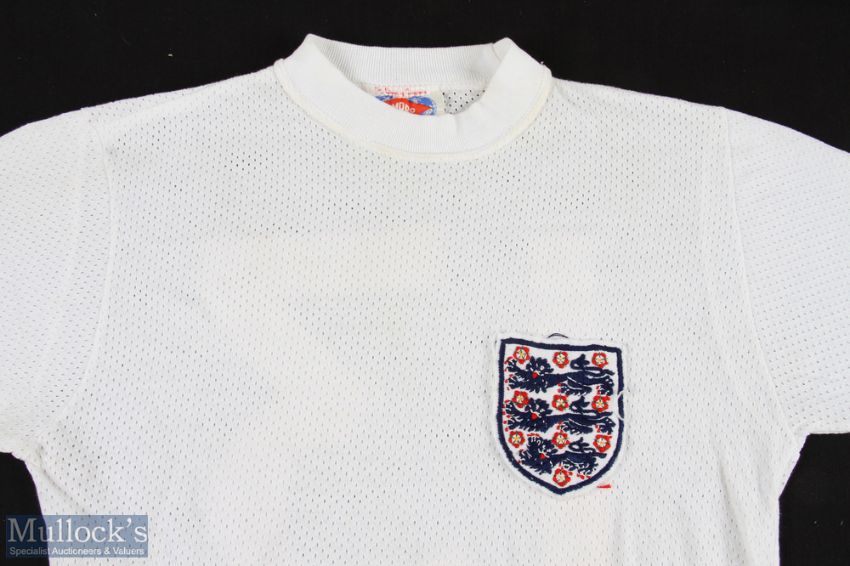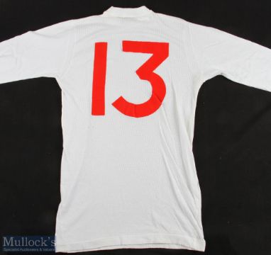 1970 World Cup England international aertex match issue shirt, crew collar, white with 3 Lions badge, no. 13 to the reverse. David Sadler was the wearer of no.13 when coming on as substitute v Ecuador. (1) Note: From direct descendant of the family