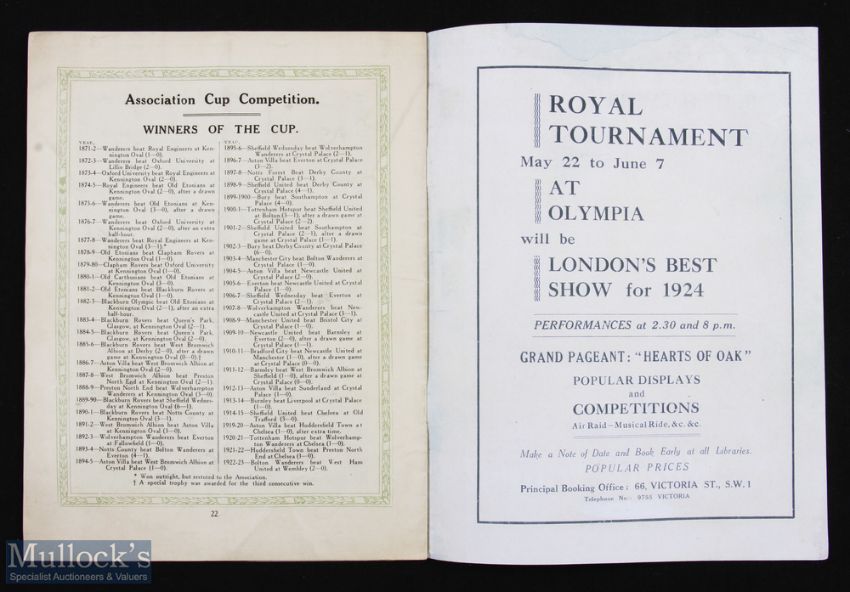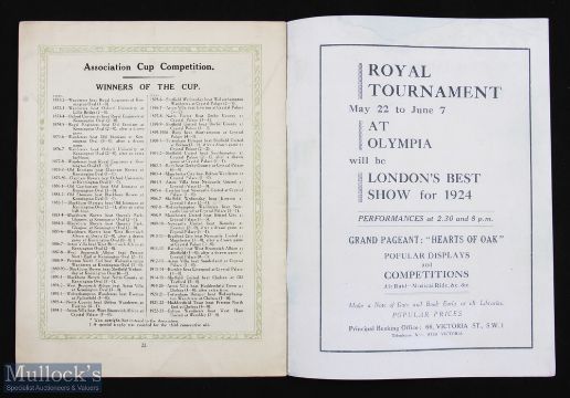AMENDED DESCRIPTION - 1924 FA Cup Final Aston Villa v Newcastle United match programme at Wembley, rarest cup final issue, covers are facsimile copies of original, internal pages are original in good clean overall condition