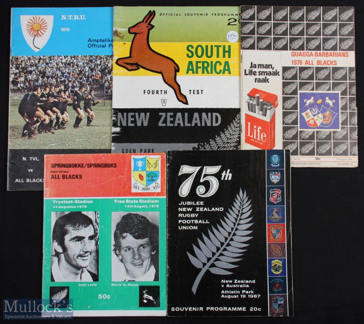 1960s/70s S Hemisphere Big Match Rugby Programmes (5): 1965 NZ v S Africa 4th Test at Auckland; 1967 75th Jubilee NZ v Australia at Wellington; 1976 S Africa v NZ 2nd Test at Bloemfontein and both the Quaggas & Northern Transvaal v NZ. Good or better, the odd nick or mark
