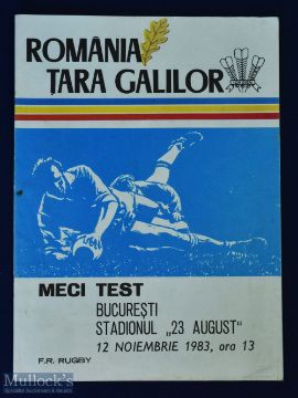 1983 Romania v Wales Rugby Programme: Not the Welsh selectors or squad's greatest hour, but a huge boost for the victorious hosts. Clean example apart from a few random biro marks and hasn't succumbed to the fading/rubbing or running of colour to which this issue is prone. G