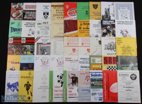 English Club Rugby Programmes, S-T (c.100): Fine wide selection, 1950s to 2000s, first class and well below, to inc Sale v Bradford 04/1961, St Helen's v Wakefield (Union!) 04/1981, St Luke's v Weston 10/1968, Streatham v Esher 11/1959, Sutton v Wolverhampton 12/1966, Taunton v Weston 04/1872 & Torquay v Paignton 04/1976. G/VG