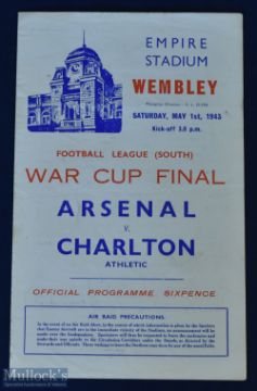 1943 Football League South War Cup Final Arsenal v Charlton Athletic at Wembley 1 May 1943, 4 pager; team changes, slight crease. (1)