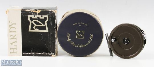 Hardy, England The Uniqua 3 ½” alloy fly reel, light signs of use, constant check, runs smooth, slight salt corrosion to inner spool, housed in makers zip case and cardboard box
