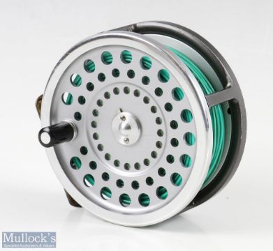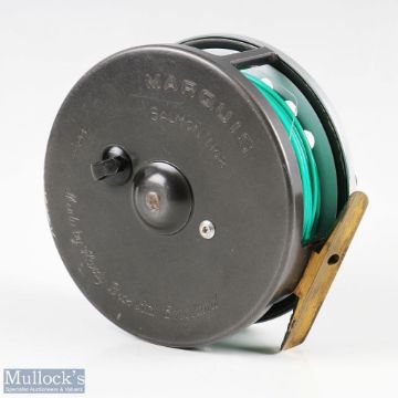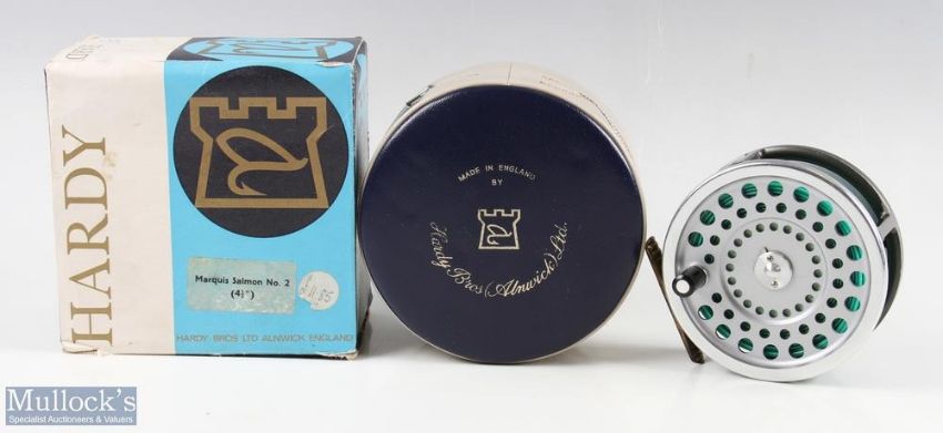 Hardy Bros, England Marquis Salmon No.2 alloy reel with brass ribbed foot, rear adjuster, runs smooth, constant check, housed in makers zipped case and cardboard box