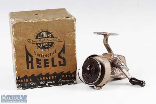 J W Young & Sons The Ambidex spinning reel, runs smooth shows heavy signs of use, in makers box